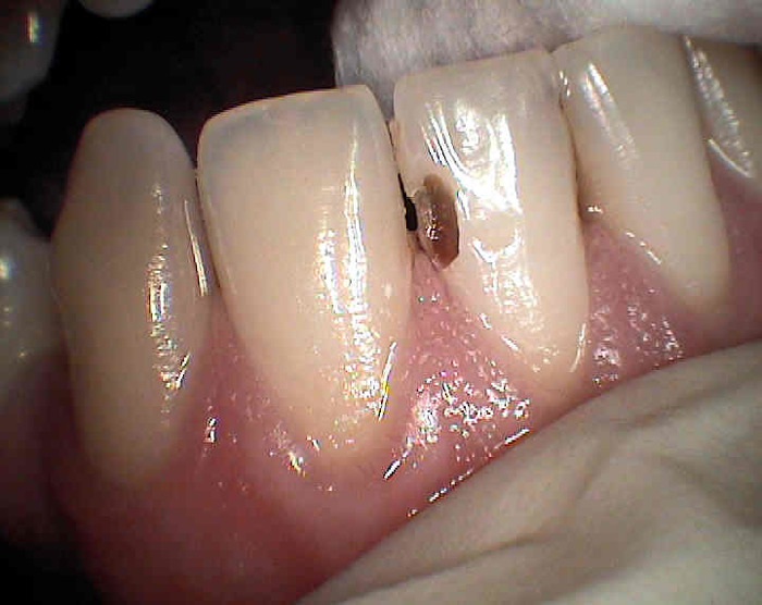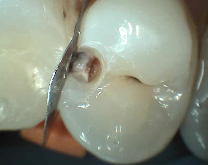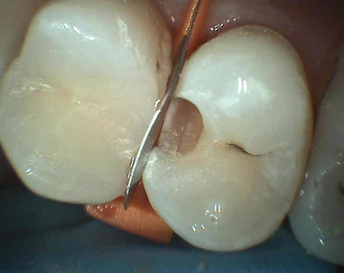 Příznaky zubního kazu : zdrsnění povrchu zubu, ulpívání zbytků potravy, bolestivost na podráždění (chlad, sladké, někdy při skusu), v mezizubním prostoru se může trhat zubní nit ( ostré okraje kazivé dutiny).